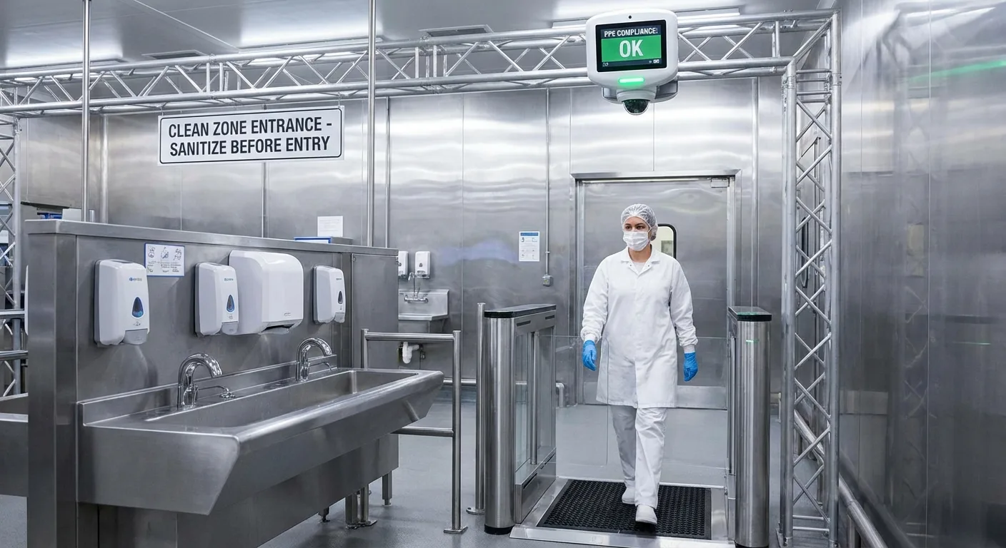 Vision AI monitors handwashing stations, clean-zone entry points, and production areas in real time to verify worker compliance with hygiene protocols — including proper handwashing technique, hairnet and glove usage, and correct PPE donning. Agentic AI generates compliance reports, alerts supervisors to repeated violations, and provides trend data for HACCP and SQF audit documentation.