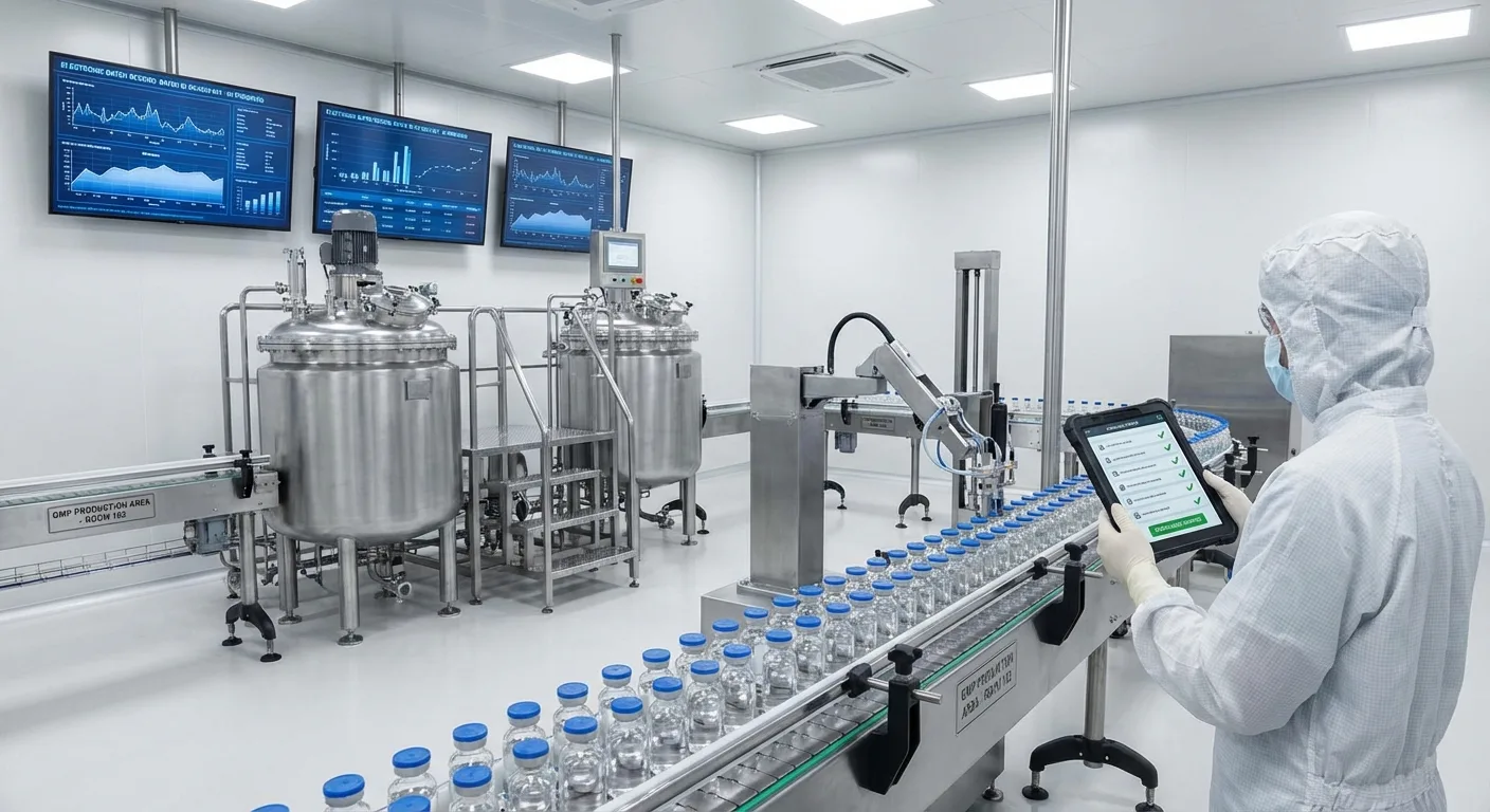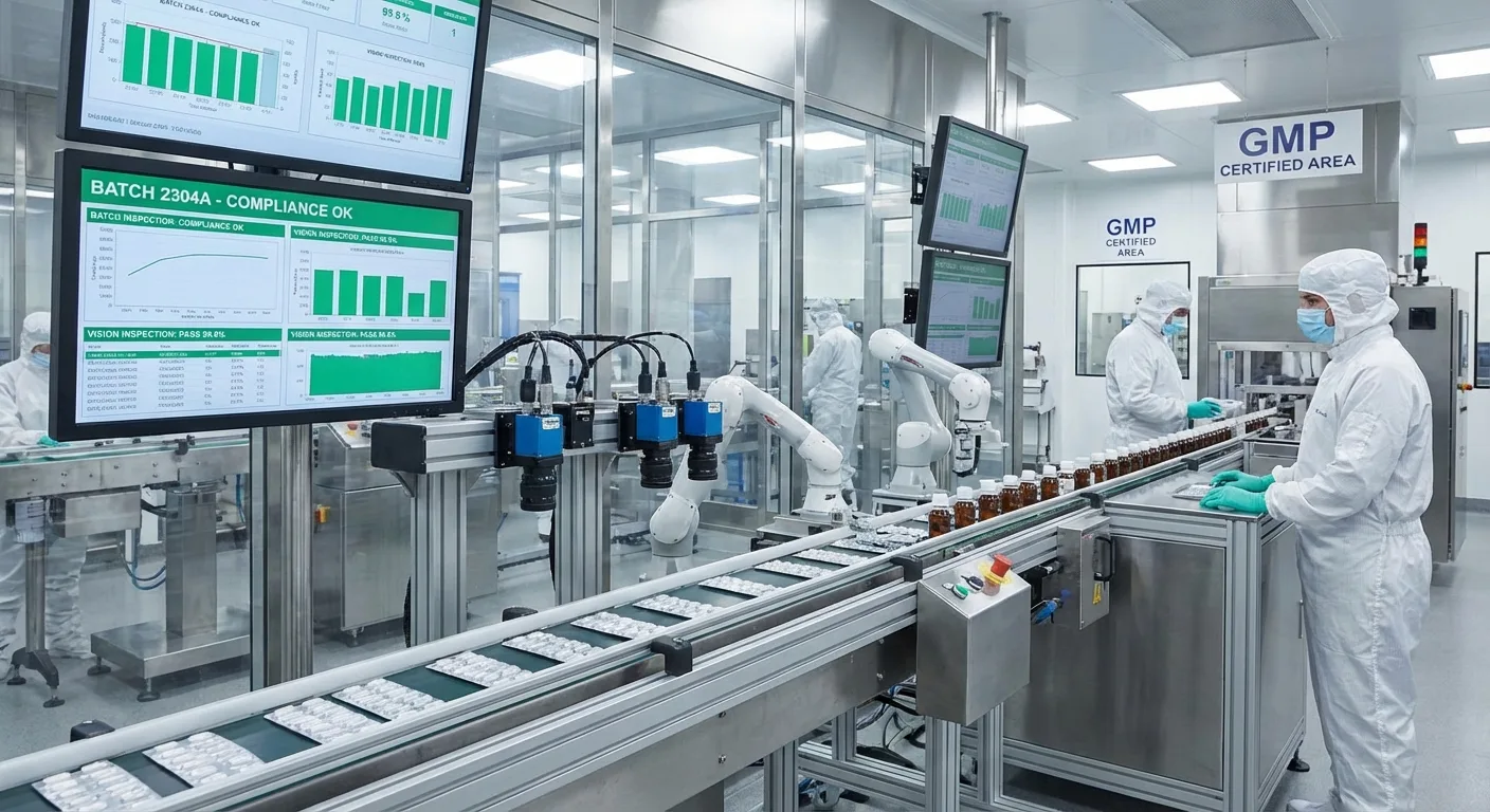 AI strengthens pharmaceutical manufacturing by providing continuous, objective monitoring of production processes that manual methods cannot match. Vision AI inspects every unit for contamination and defects while tracking critical batch parameters in real time. Agentic AI correlates process deviations with environmental conditions to identify root causes, generates automated GMP documentation with full audit trails, and monitors equipment drift between calibration cycles — ensuring product integrity and regulatory compliance at every step.